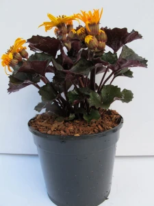 Gęsta, zwarta kępa pięknych, szerokich, błyszczących, ciemnofioletowych liści, które odważnie prezentują efektowne, duże, żółto-pomarańczowe, przypominające stokrotki kwiaty. Doskonały kontrast na rabatach , szczególnie w połączeniu z roślinami liściastymi w kolorze limonki. Wyjątkowa w pojemnikach. Najlepiej czuje się miejscu lekko ocienionym.